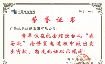 全國電線電纜產(chǎn)品質(zhì)量監(jiān)管AA級企業(yè),全國重合同守信用單位,廣西“二十五”電線電纜產(chǎn)業(yè)重點扶持企業(yè),國家強制性產(chǎn)品CCC認證